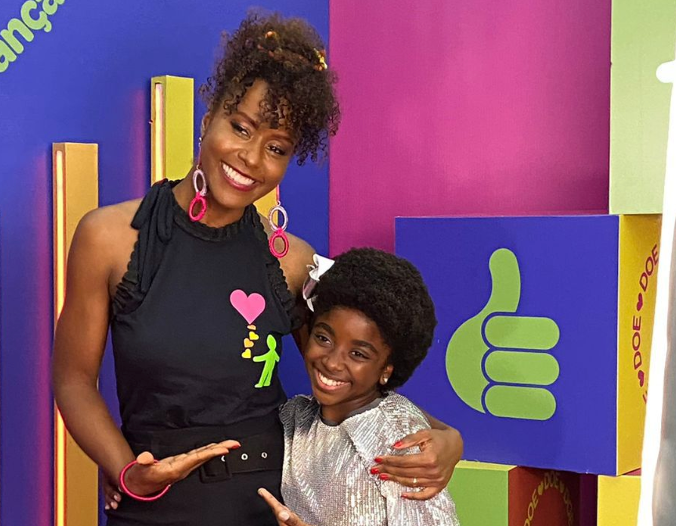 Nos bastidores, as duas demonstraram total finidade. Enquanto a futura atriz destacava o orgulho em estar diante de sua musa inspiradora, a pequena exaltava também o fato de a apresentadora do “Fantástico” ser exemplo de representatividade.
