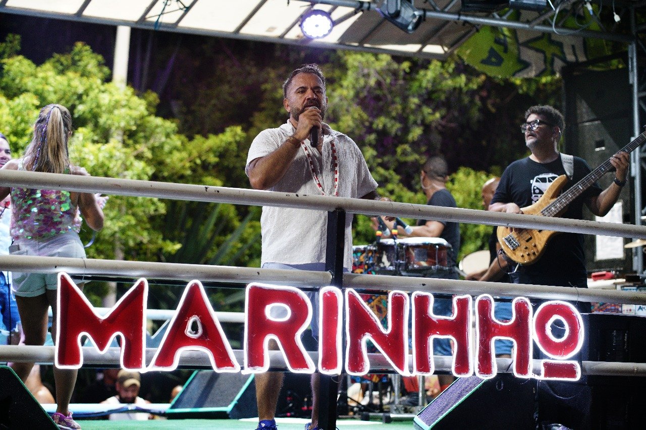 Durante os três dias em que comandou o Bloco Universitário — sem cordas, voltado exclusivamente para o folião pipoca — Marinhho emocionou o público com interpretações de clássicos de Carlinhos Brown, Daniela Mercury, Ivete Sangalo, Gerônimo, entre tantos outros ícones do axé.