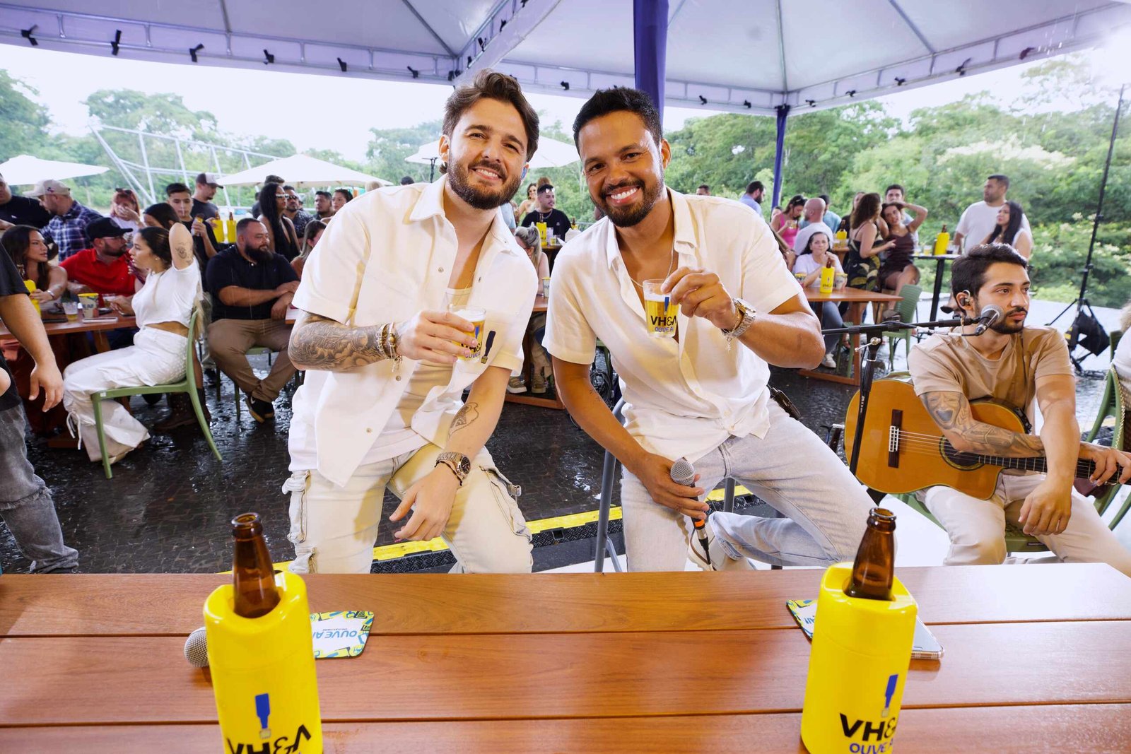 Aconteceu ontem, 10 de fevereiro, a gravação de “Ouve Aí”, novo trabalho de VH e Alexandre, marcando oficialmente o início de uma fase inédita na trajetória da dupla. O registro foi realizado no Espaço Vinny BBQ, em um ambiente intimista, com cenografia em LED, pensada para reforçar a identidade visual e o conceito da apresentação.